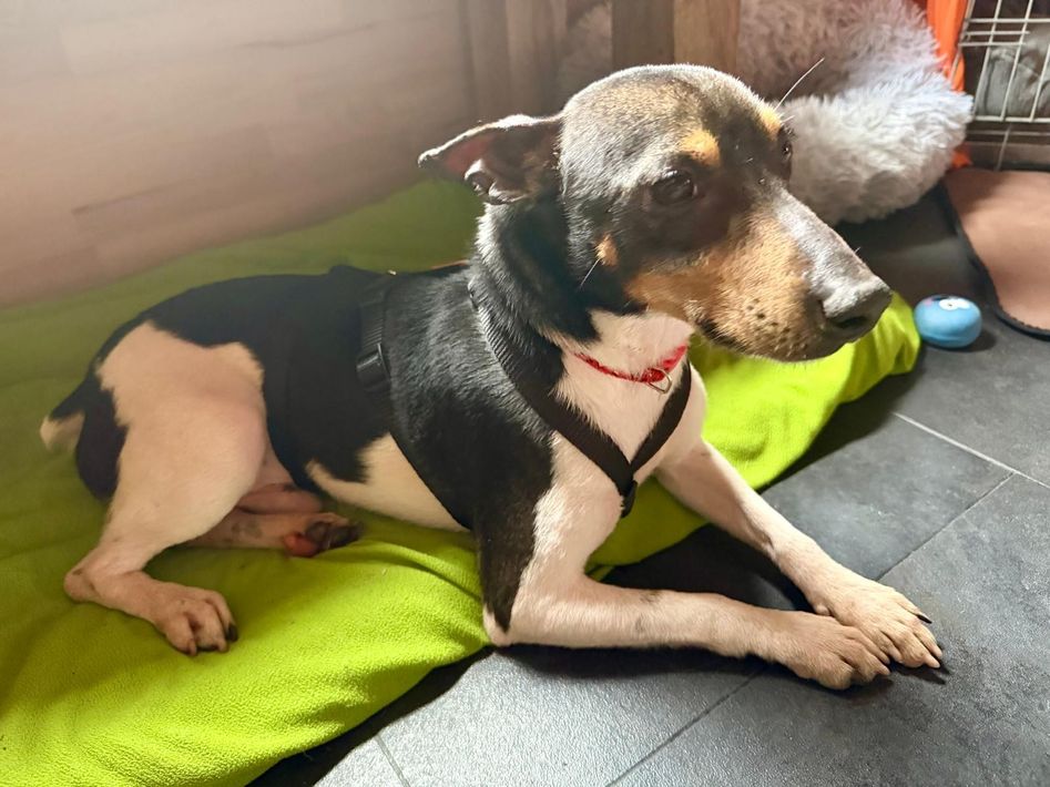 lieb, verschmust, brav, mag Menschen und alle Hunde, versucht alles, um zu gefallen, liebt es, getreichelt zu werden, manchmal etwas schüchtern und schreckhaft bzw. nervös, sehr verfressen