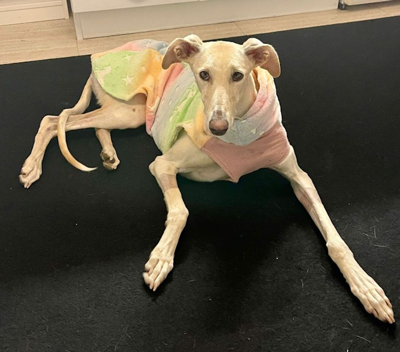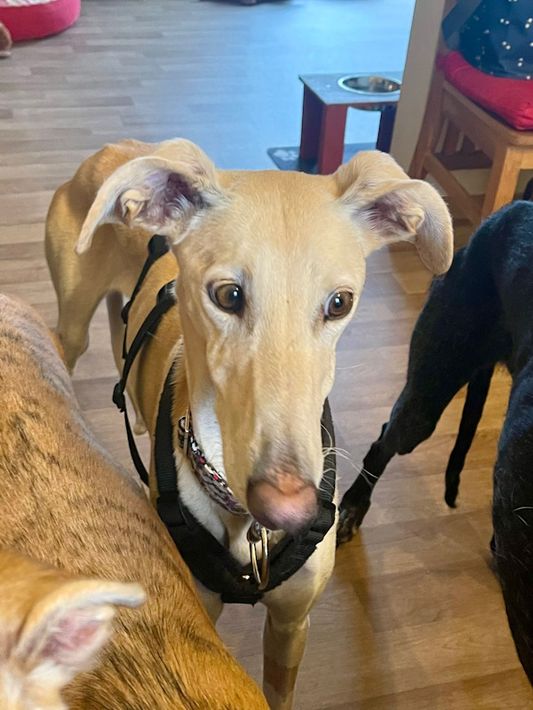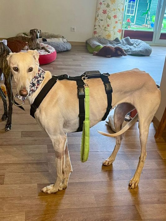Charakter: Galgo typisch zurückhaltend aber nicht scheu.
