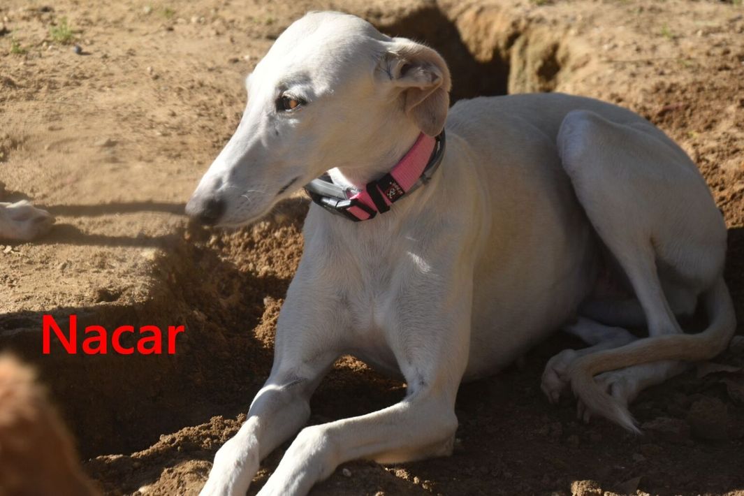 Nacar ist eine sehr ausgeglichene, menschenbezogene und freundliche Galga.