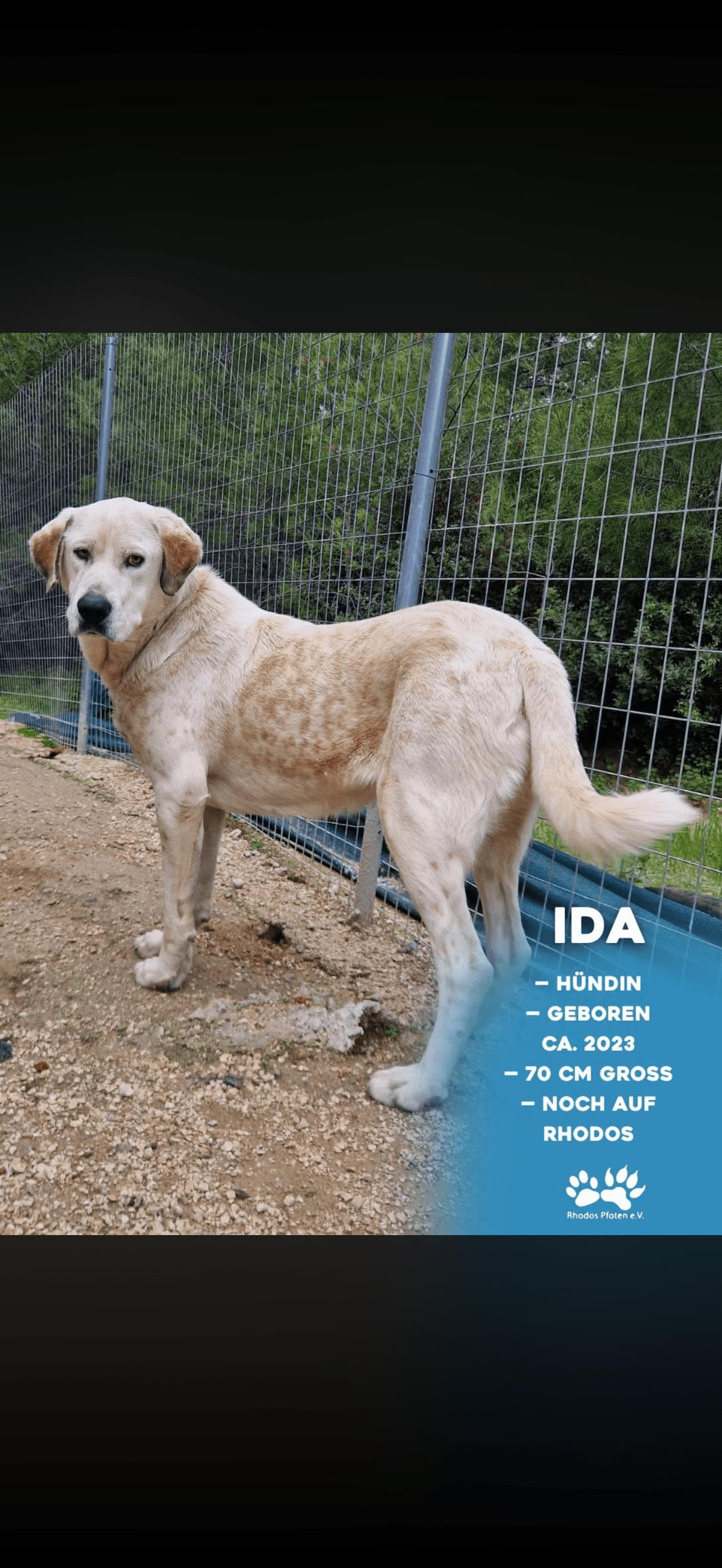 Geimpft, Entwurmt, Gechipt, EU-Heimtierausweis, Alle Hunde ab dem vollendeten 1. Lebensjahr wurden auf Mittelmeerkrankheiten getestet und werden erneut getestet, sobald ein Zuhause gefunden wurde. Die Adoptanten müssen nach Einreise des Tieres innerhalb von 12 Monaten erneut einen Test machen.