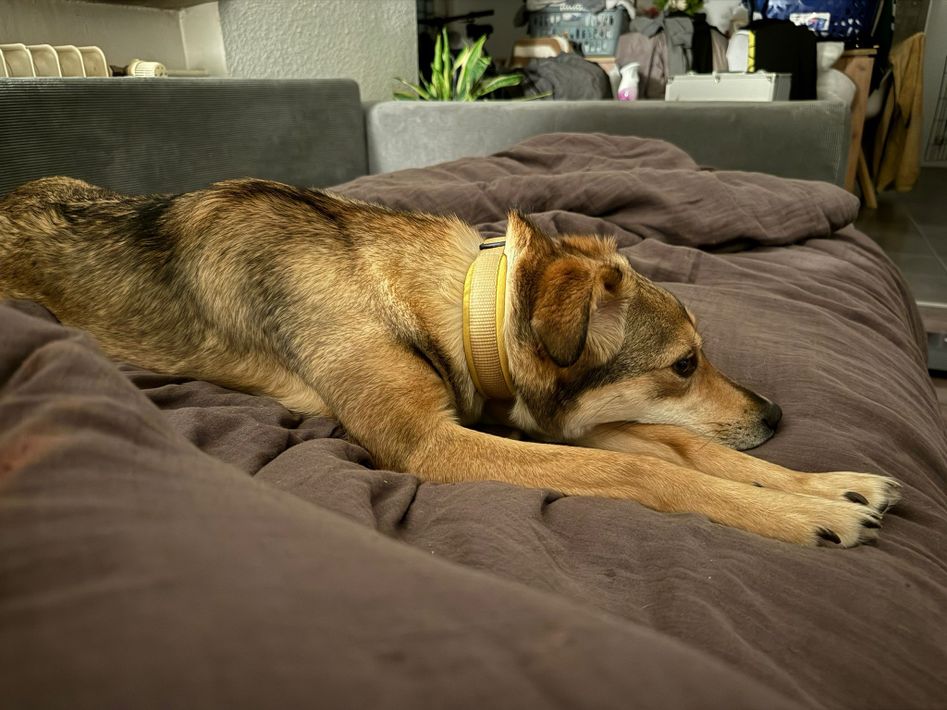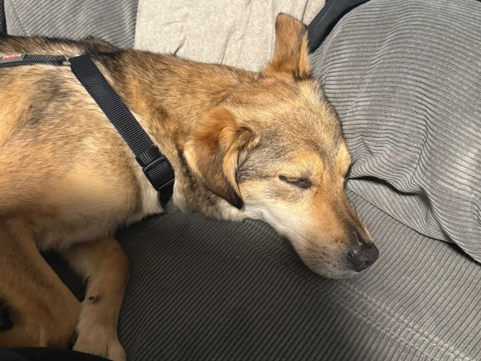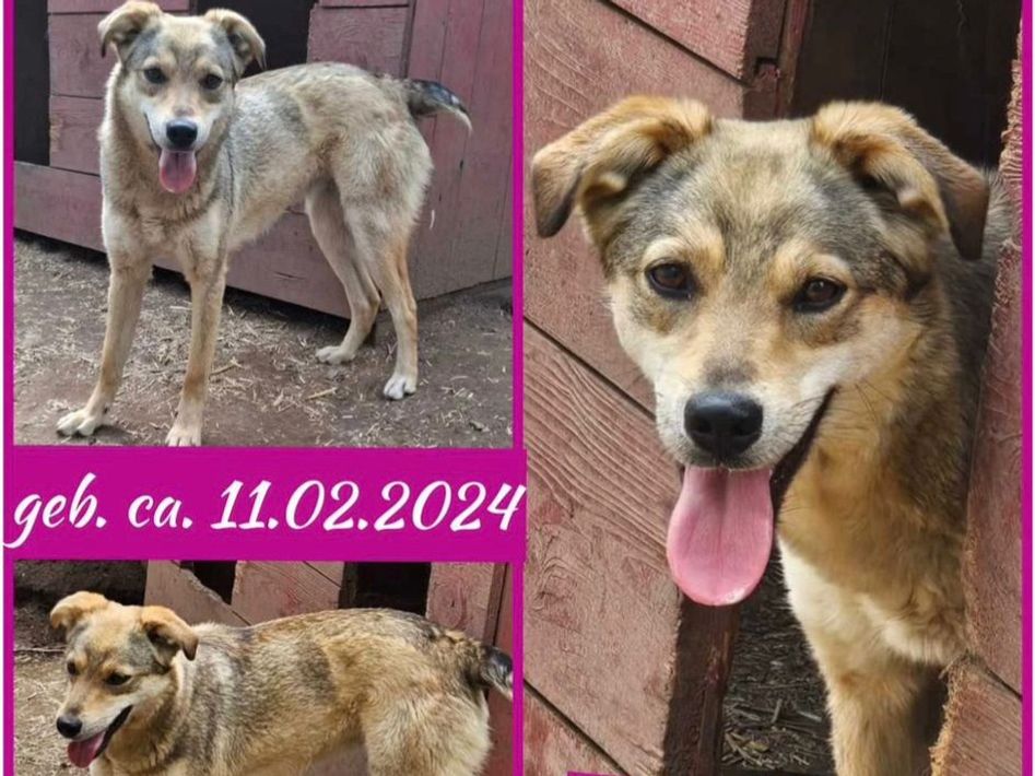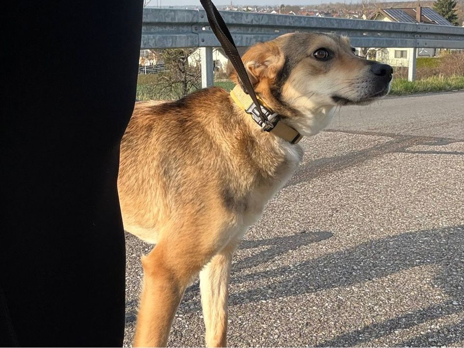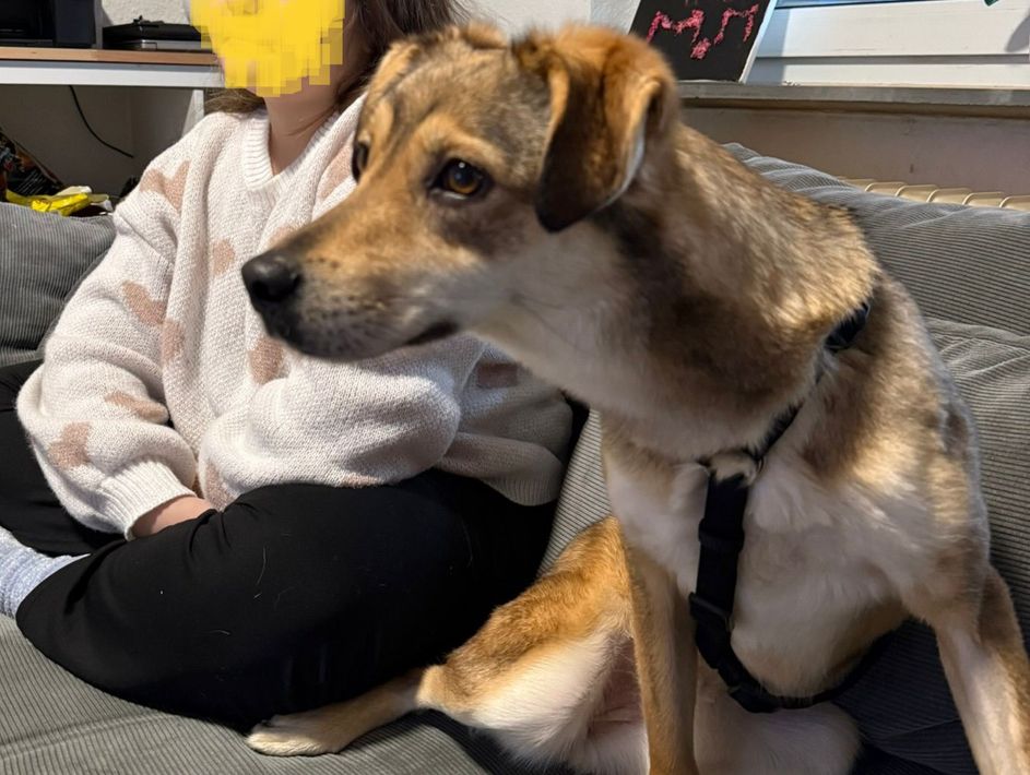 Alany(Gianna), Hündin, *ca. 11.2.24, SH ca. 45 cm, ca. 17kg, sehr unsicher, menschenbezogen, lieb.