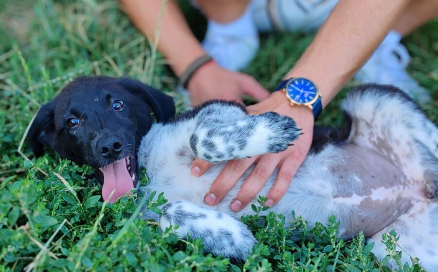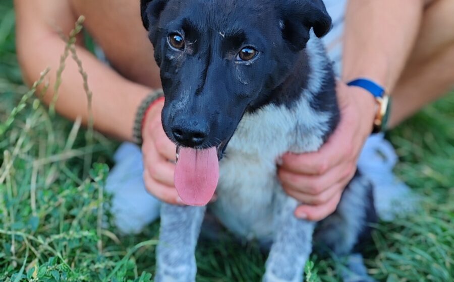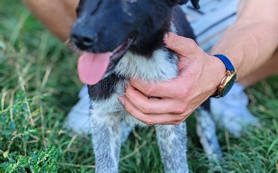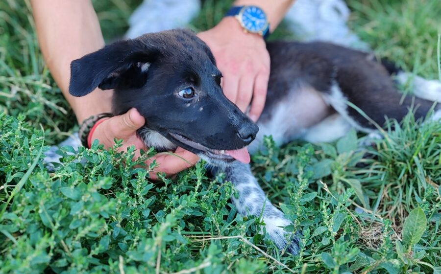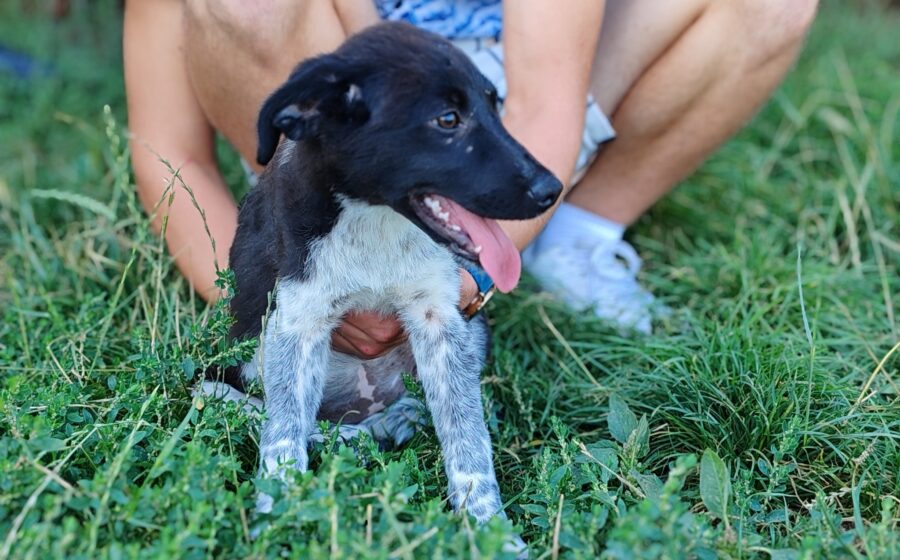 Die junge Hündin ist etwa 3 Monate alt und zeigt sich welpentypisch verspielt, neugierig und menschenbezogen.