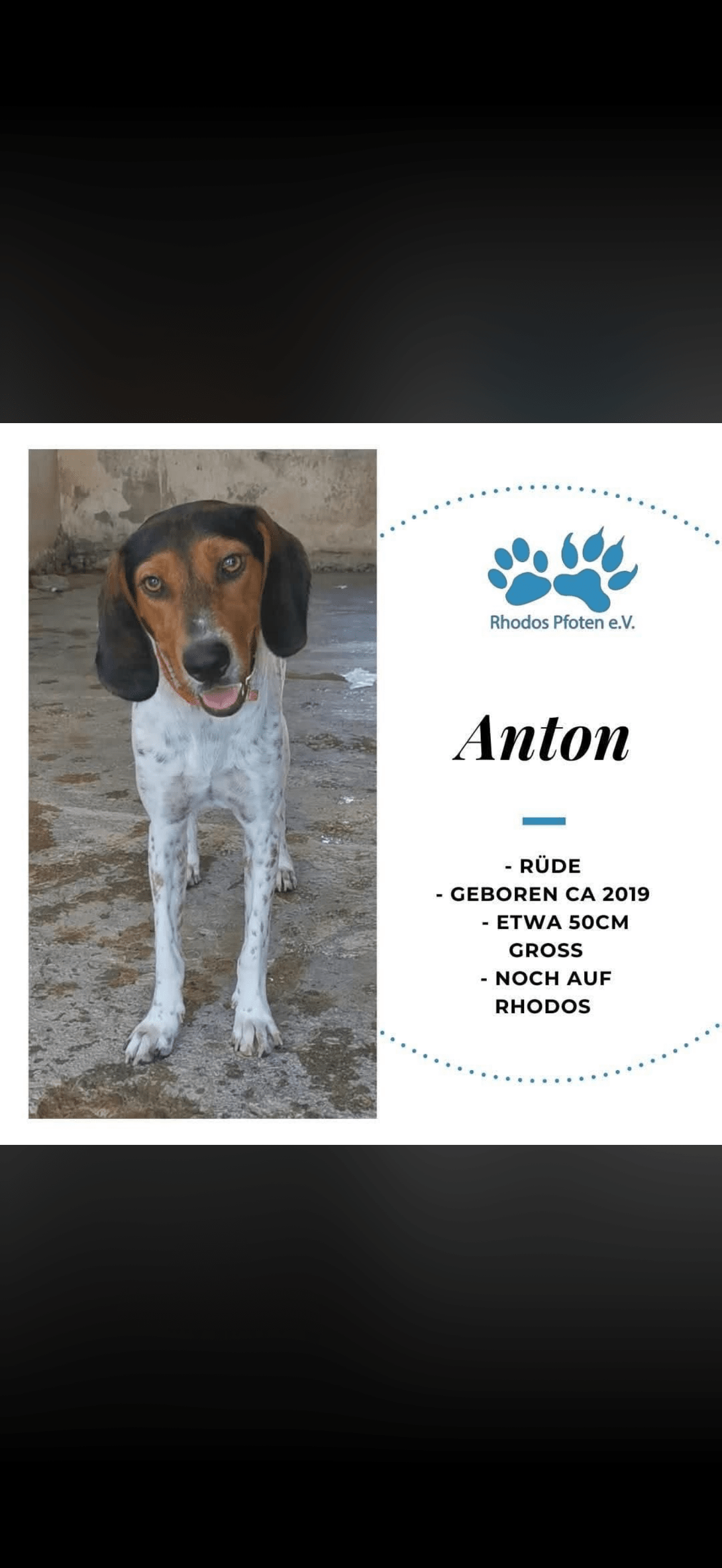 Geimpft, Entwurmt, Gechipt, EU-Heimtierausweis, Alle Hunde ab dem vollendeten 1. Lebensjahr wurden auf Mittelmeerkrankheiten getestet und werden erneut getestet, sobald ein Zuhause gefunden wurde. Die Adoptanten müssen nach Einreise des Tieres innerhalb von 12 Monaten erneut einen Test machen.