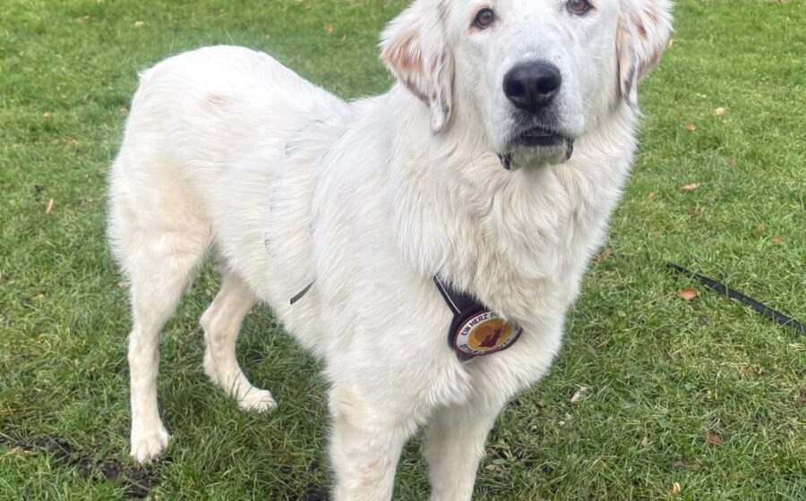 Bahar ist eine außergewöhnlich schöne und imposante Hündin. Mit ihrem schneeweißen, halblangen Fell und ihrer stolzen Ausstrahlung fällt sie sofort auf.