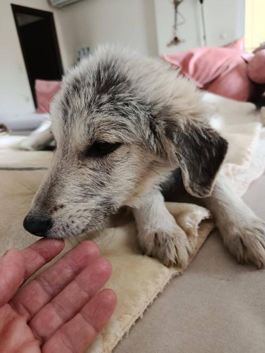 Hündin BELLI, geb. ca. September 2025, Endmaß unter Vorbehalt ca. 45-50 cm, Endgewicht ca. 15-20 Kilo, Zuhause oder Pflegestelle gesucht ab Mitte Februar.