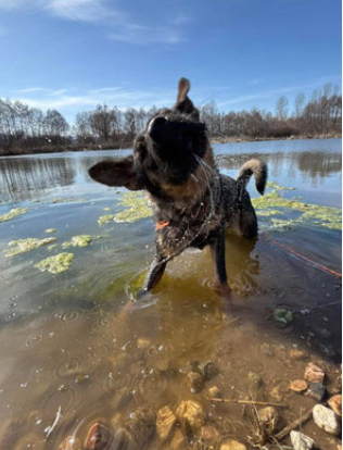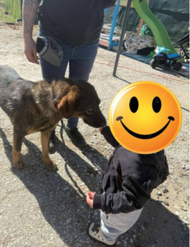 Der hübsche Junghund ist bedacht und zu Beginn zurückhaltend. Er ist verspielt, verschmust, kinderlieb sowie hunde- und katzenverträglich.