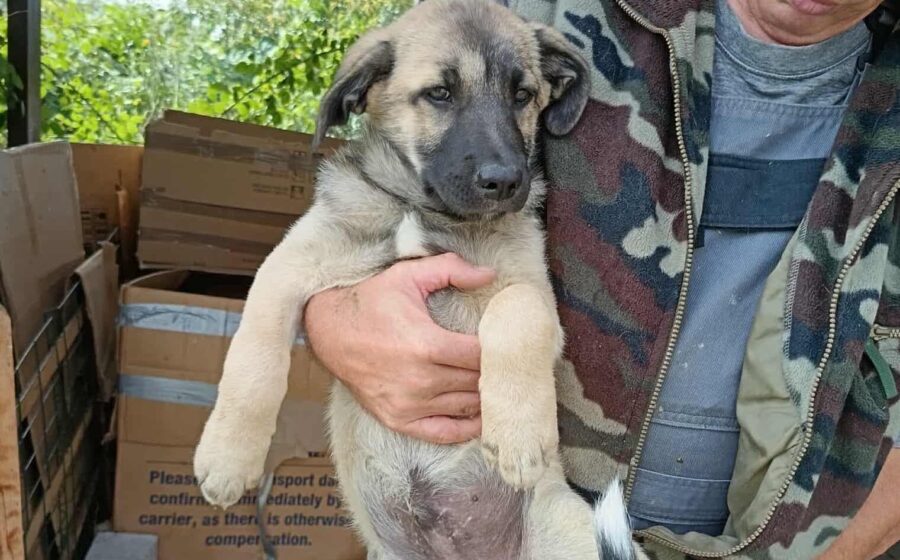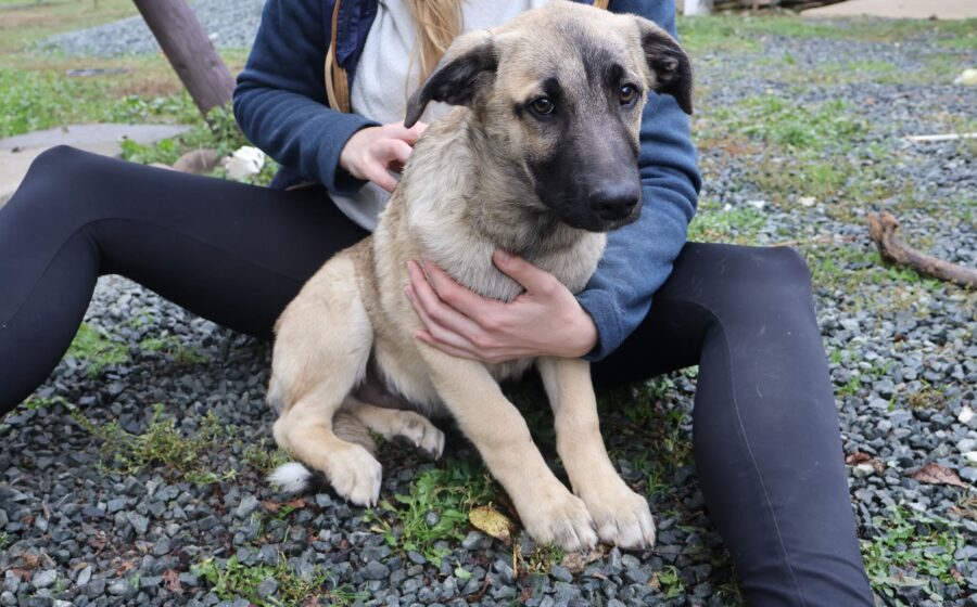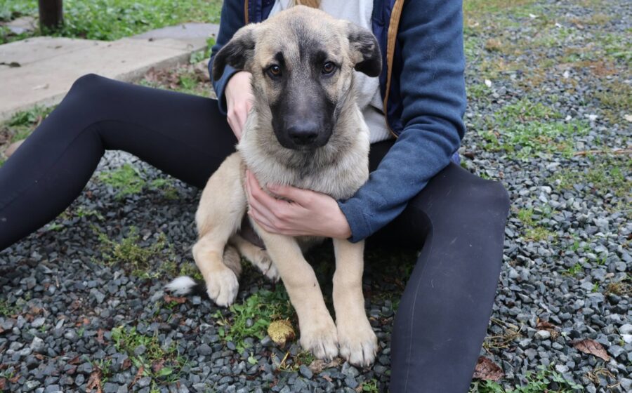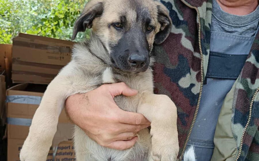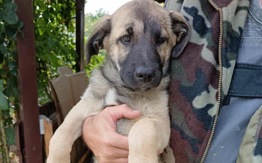 Butschek ist erst 3 – 4 Monate alt und noch ein richtiges Baby, sein Fell ist kuschelig und weich und blond mit einer schwarzen Maske.