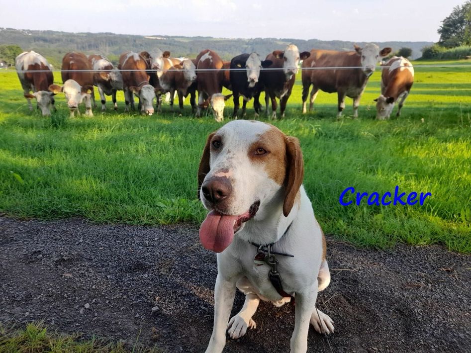 Cracker ist ein sozialer und freundlicher, anfangs noch etwas schüchterner Rüde.