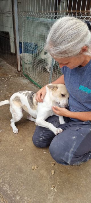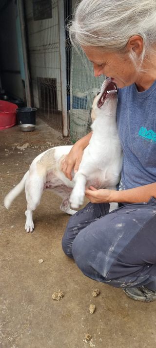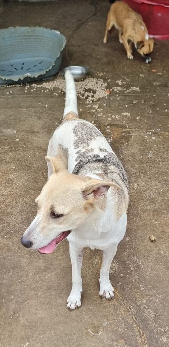 Ich lebe mit anderen Hunden zusammen, lerne viel und genieße die täglichen Spiele mit den Hundefreunden und die Streicheleinheiten der Tierschützer hier. 💗