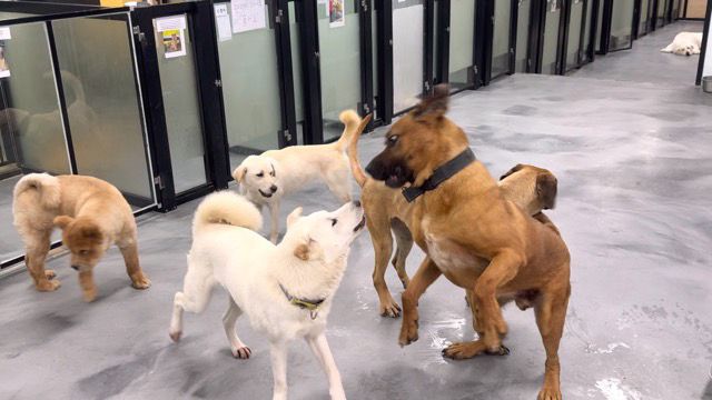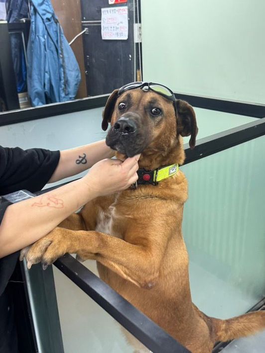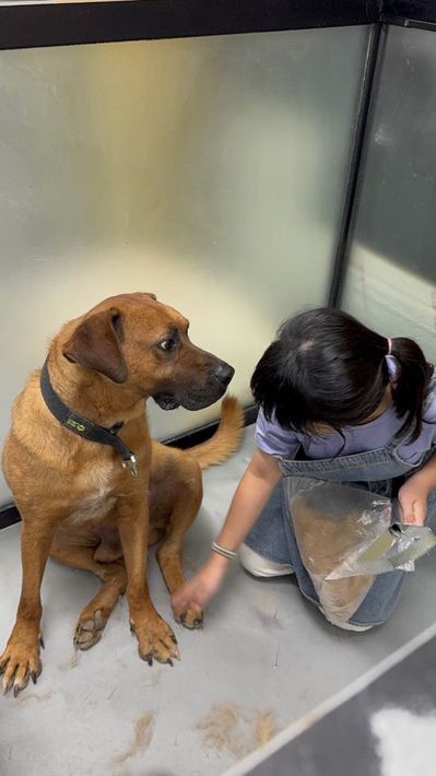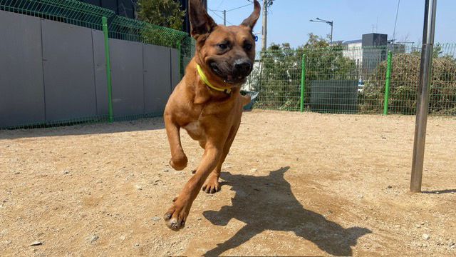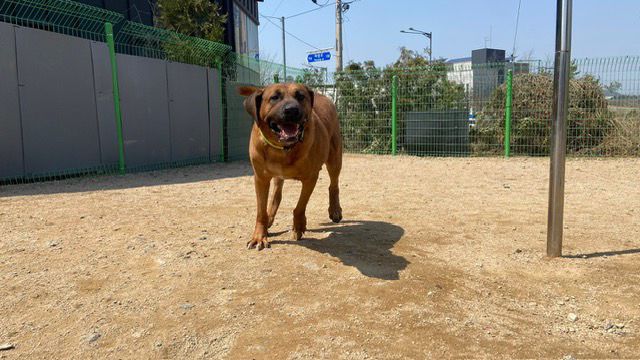 Er ist der freundlichste und gutmütigste Hund unter den 60 Hunden in unserem Zentrum.