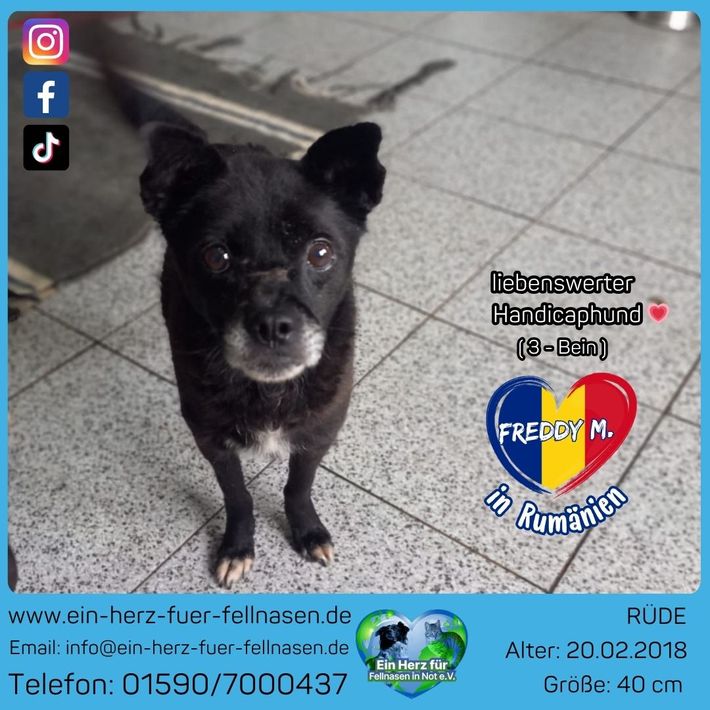 Wer schenkt einem kleinen Kämpfer mit drei Beinen ein großes Glück – und endlich ein Zuhause? 🍀 Klein, schwarz, liebebedürftig — und ja, er kommt mit drei Beinen durchs Leben.