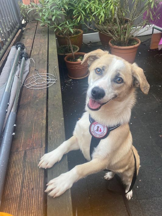 Emoji ist ein lernwilliger, neugieriger Junghund, der auf der Suche nach seinen Menschen ist, an deren Seite er die Welt erkunden darf.
