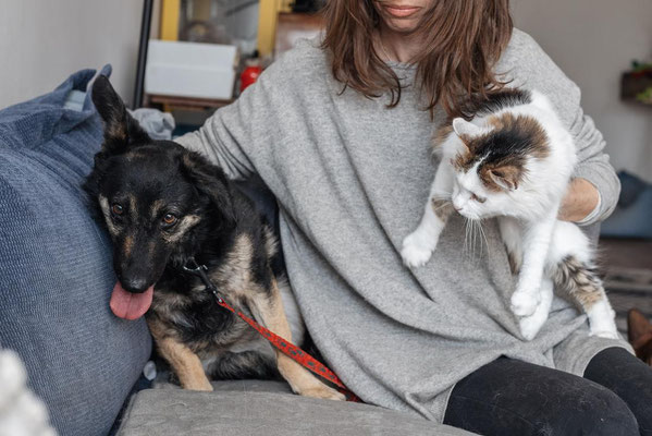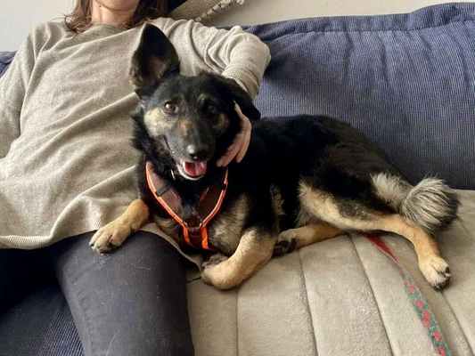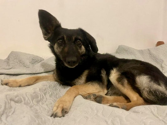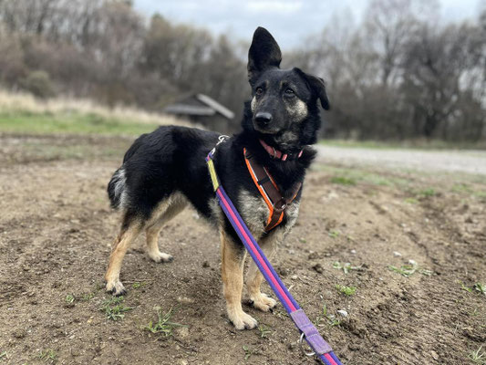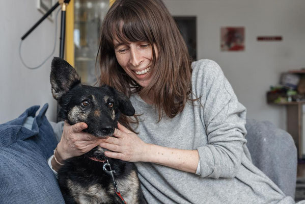 Die verschmuste Hündin mag es gerne ruhig. Sie ist draussen noch etwas unsicher, jedoch hunde- und katzenverträglich.