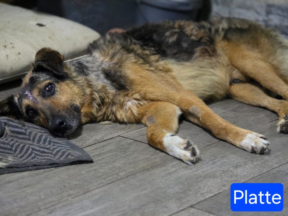 Hagrid (Spitzname "Platte") Rüde, Alter unbekannt, ca. mittelgroß, freundlich, liebevoll, sozial