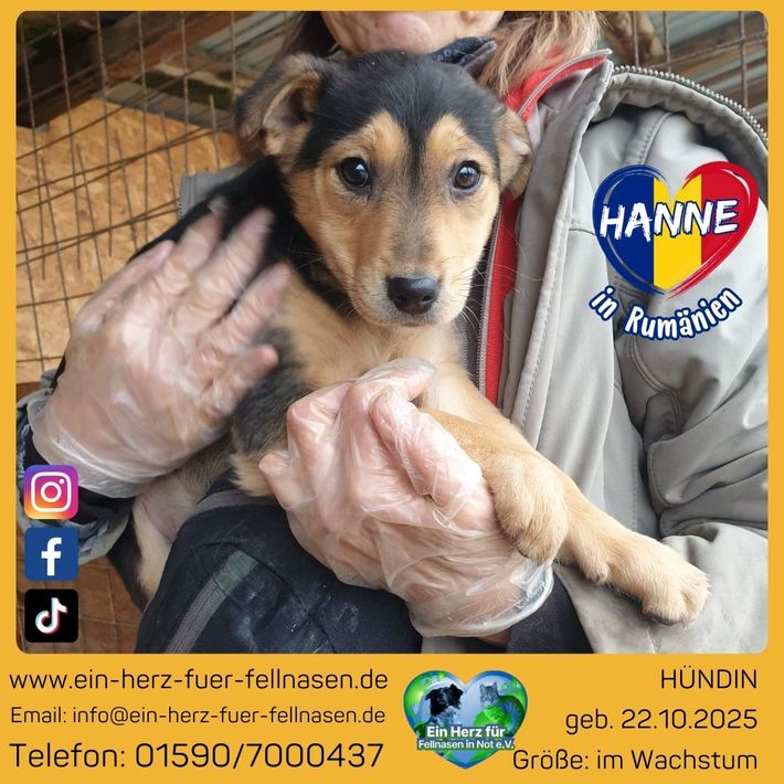 Ich heiße Hanne und kenne die Welt bisher nur ein kleines bisschen. Alles, was für andere Hunde selbstverständlich ist, liegt noch vor mir. 💓