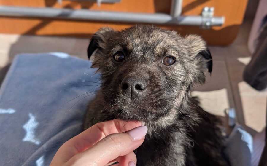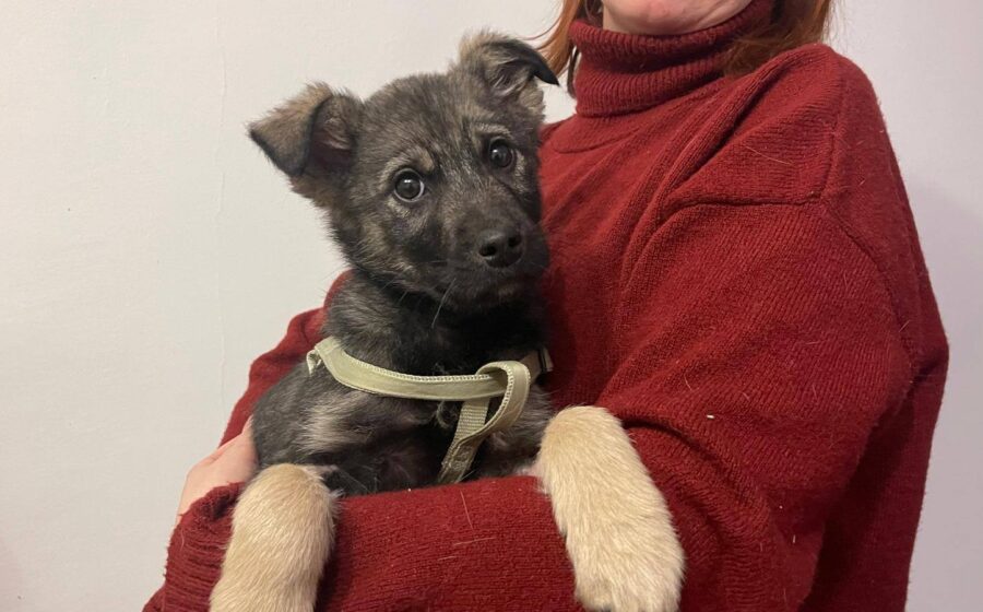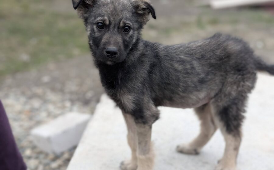 Der süße Welpenjunge ist etwa 3 Monate alt und ist mit aktuell 33 cm der Kleinste und Zarteste unter seinen Geschwistern.