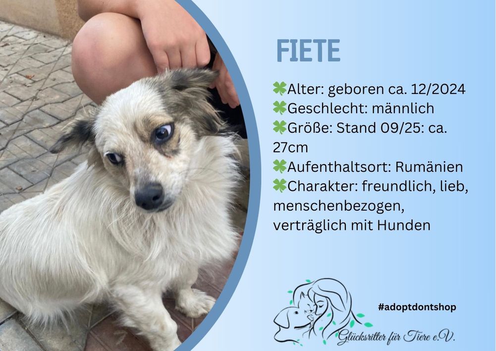 Fiete ist ein zuckersüßer, sehr verträglicher kleiner Bube❤️. Er ist sehr menschenbezogen und einfach knuddelig❤️.