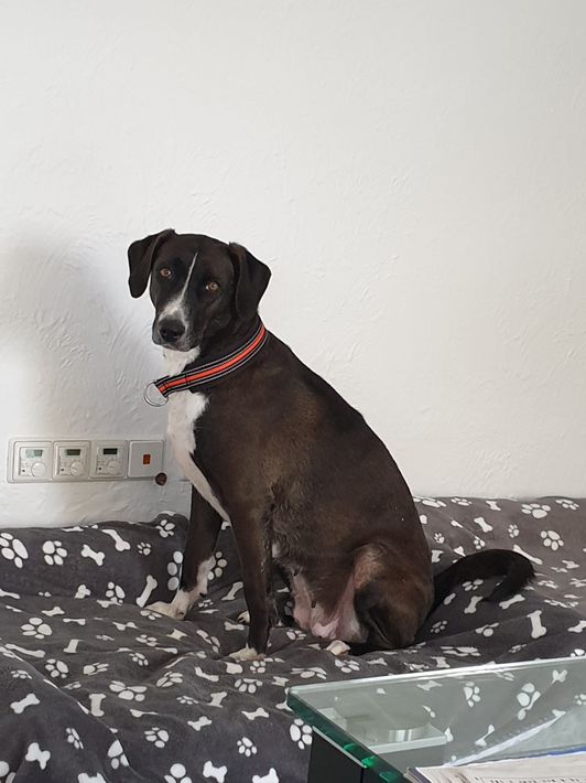 Geimpft, Entwurmt, Entfloht, MMK-Test, Gechipt, EU-Heimtierausweis, Melina wurde positiv auf Herzwürmer und Ehrlichiose getestet, aber die Behandlung ist inzwischen vollständig abgeschlossen.