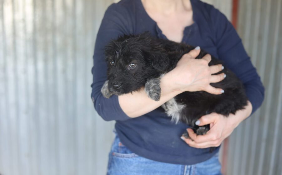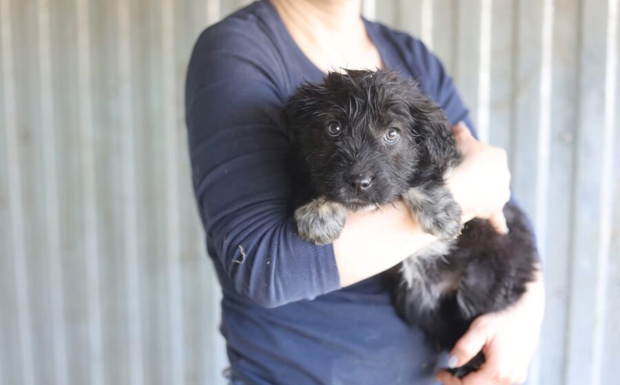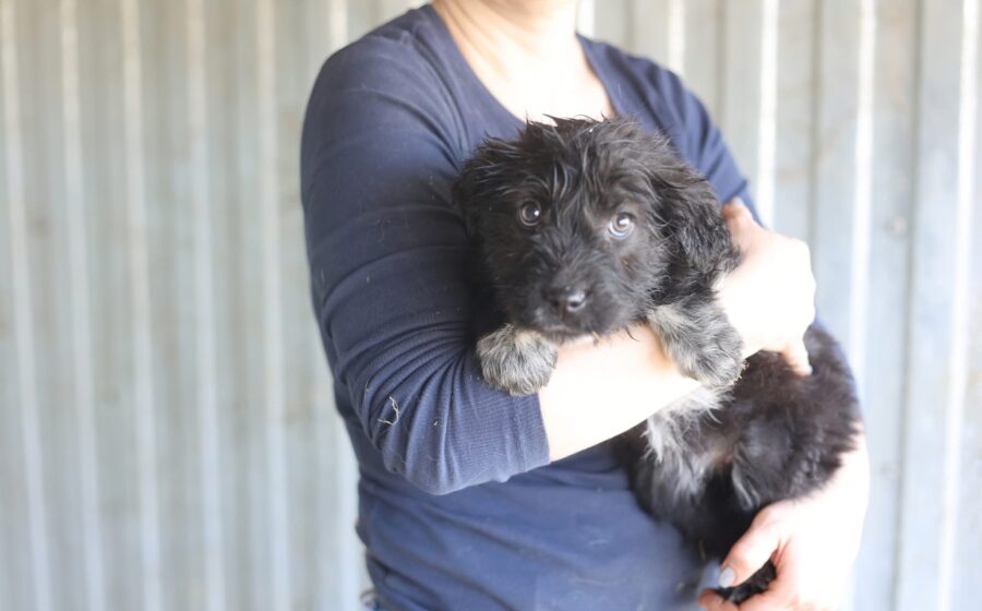 Die kleine Hündin ist etwa 3 Monate alt, rund 30 cm groß und wird voraussichtlich mittelgroß werden.