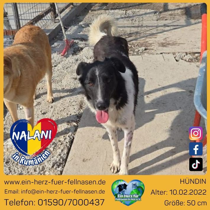 Nalani ist eine freundliche und aufgeschlossene Hündin. Menschen begegnet sie offen und zugänglich, dabei jedoch immer angenehm zurückhaltend – weder aufdringlich noch distanzlos.