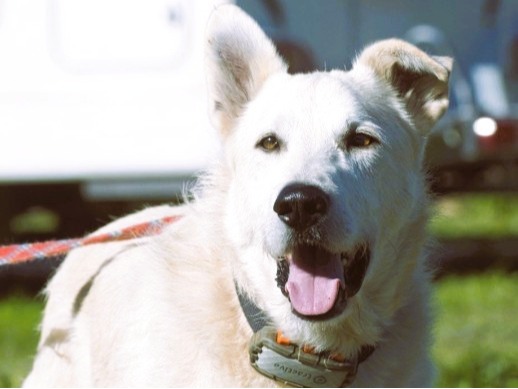 Großer, ruhiger und sehr freundlicher Rüde (2020, ca. 64 cm). Sozialverträglich, verschmust, alltagstauglich. Sucht erfahrene Menschen.