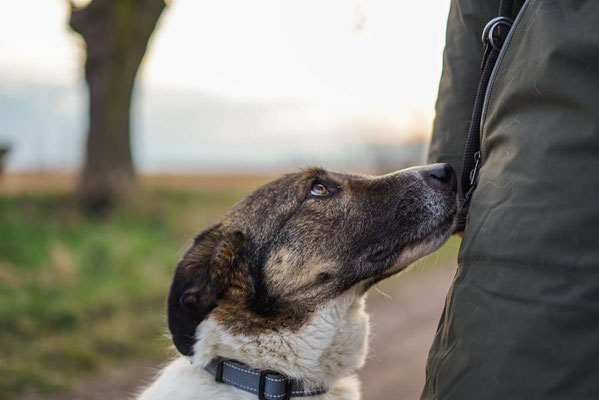 Der freundliche und ausgeglichene junge Rüde ist sozial, kontaktfreudig und verschmust.
