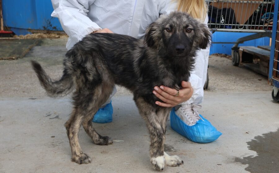 Die kleine Sora ist etwa 3–4 Monate jung. Mit ihrem außergewöhnlich marmorierten Fell in Grautönen und den warmen, ausdrucksstarken Augen fällt Sora sofort auf.