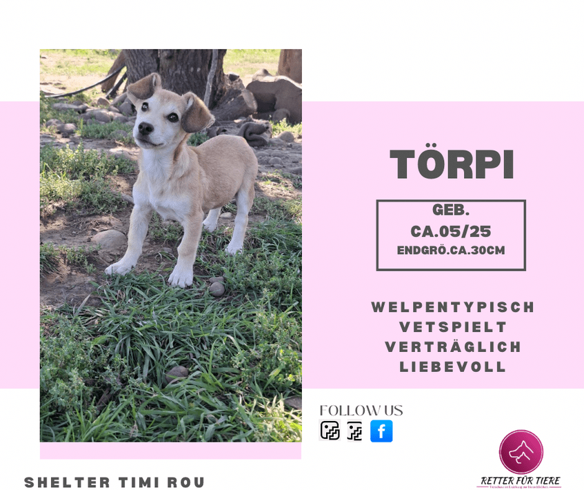 Bei Fragen oder Interesse gerne eine PN an uns! https://www.facebook.com/profile/100083360140134/search/?q=T%C3%B6rpi Bewerbung an: www.retterfuertiere.de/adoption/selbstauskunft-hund Wer mag mich auf meinem Weg ins Glück unterstützen? 🐾 Bis ich mein Für-Immer-Zuhause gefunden habe, brauche ich noch ein bisschen Hilfe. Magst du mich mit einer monatlichen Patenschaft oder einer einmaligen Spende unterstützen? Dein Beitrag hilft mir bei Impfungen, Futter und medizinischer Versorgung – und bringt mich meinem neuen Leben ein großes Stück näher.