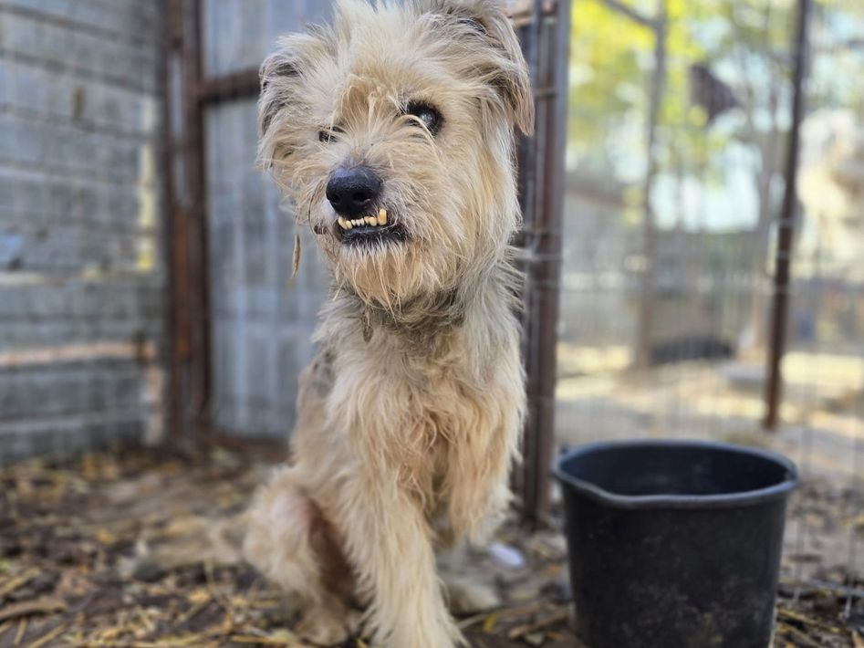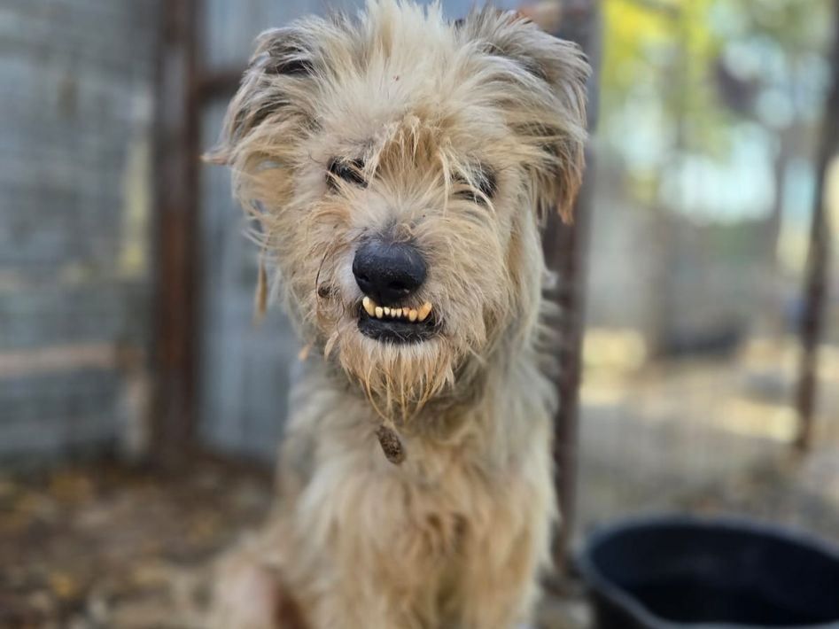Toothy, Rüde, *ca. 01.11.2015, ca. kniehoch bis mittelgroß, Handicap, sanft, dankbar, fast blind