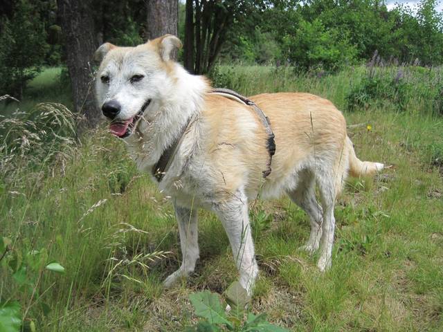 Ruhig und sanfter Rüde, lieb, verträglich. Braucht etwas Zeit bei ihm fremden Personen, ist dann aber sehr, sehr lieb, freundlich und sanft. Hat gelernt an der lockeren Leine zu laufen!