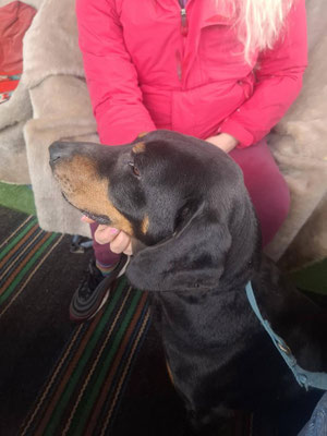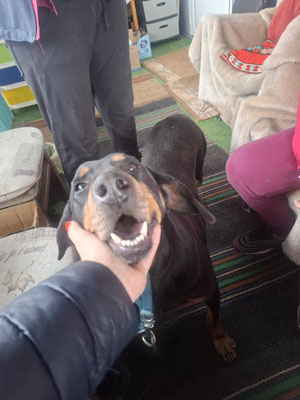Der freundliche und gelassene junge Rüde zeigt sich aufgeschlossen. Er ist verspielt, manchmal sogar albern und hundeverträglich.