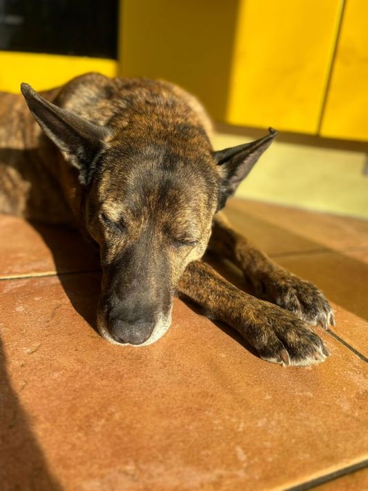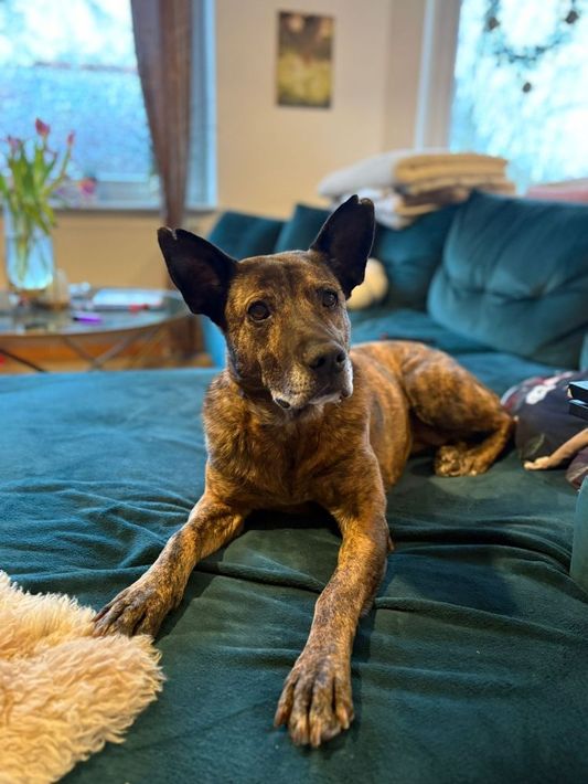 Xena ist eine liebenswerte Hündin, die trotz eines schweren Starts ins Leben ihr großes Herz und ihre Lebensfreude bewahrt hat.