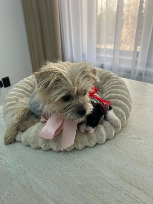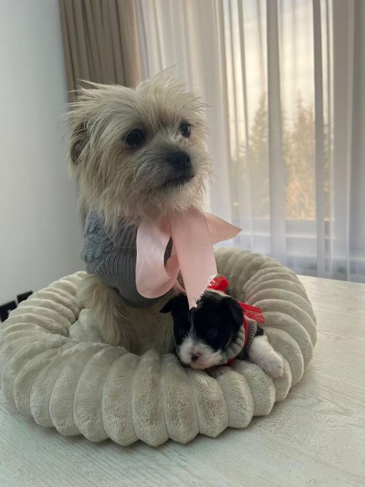 Ich bin ein kleines, zartes Hundemädchen und werde auch später eher klein bleiben. Am liebsten kuschle ich mich an meine Mama, schlafe zufrieden ein und entdecke neugierig alles um mich herum. 💗