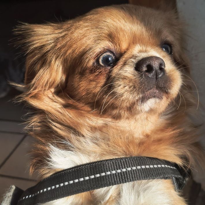 Ruhig, ausgeglichen, intelligent, lernwillig, verschmust, fröhlich, neugierig, verträglich mit Hunden/ Katzen, kinderlieb, leinenführig, kein Jagdtrieb, bellt nicht, bleibt alleine.