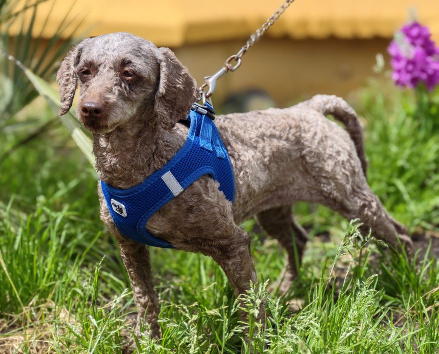 Charakter: zurückhaltend, schüchtern, aktiv, verträglich mit anderen Hunden