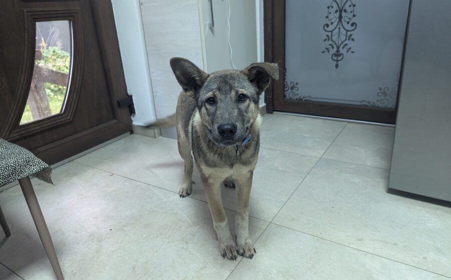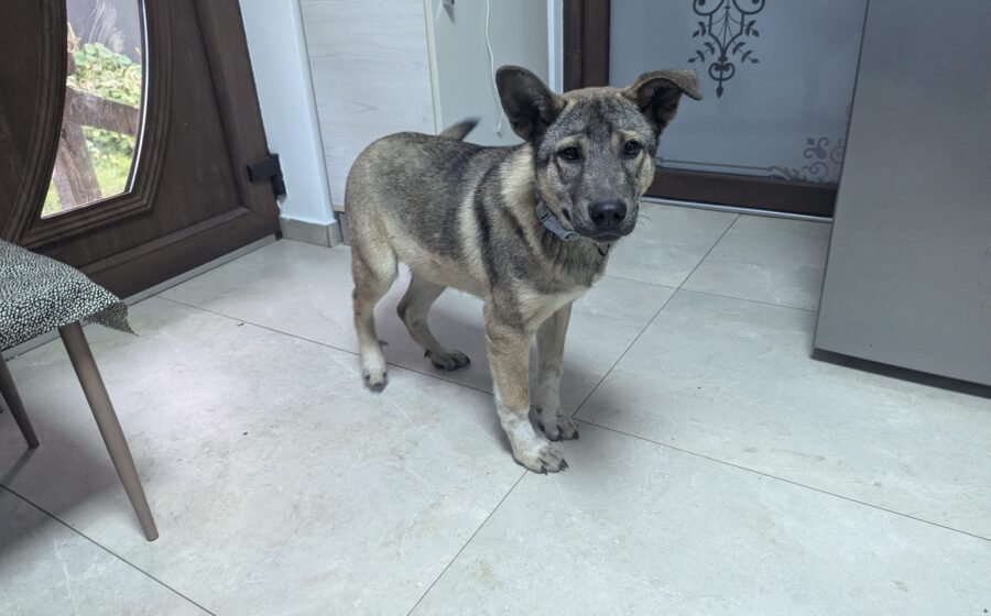 Hundekind Gregor wird zu einem stattlichen Schäferhund-Mischling heranwachsen, der viel Intelligenz und Energie mitbringt und sich eine aktive Familie wünscht.
