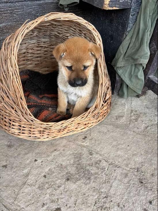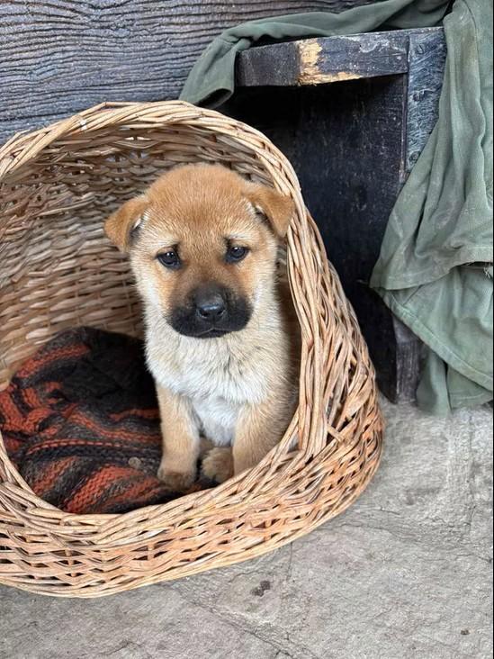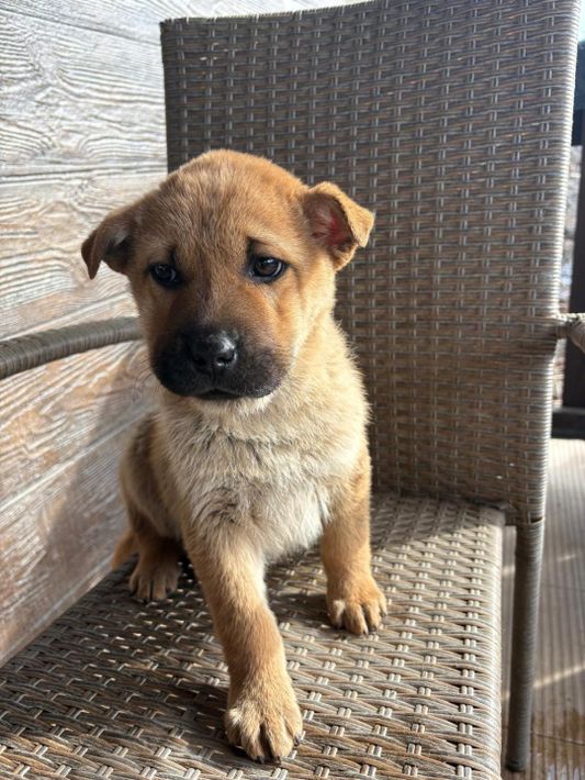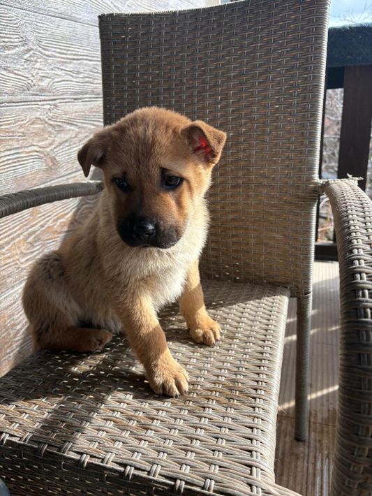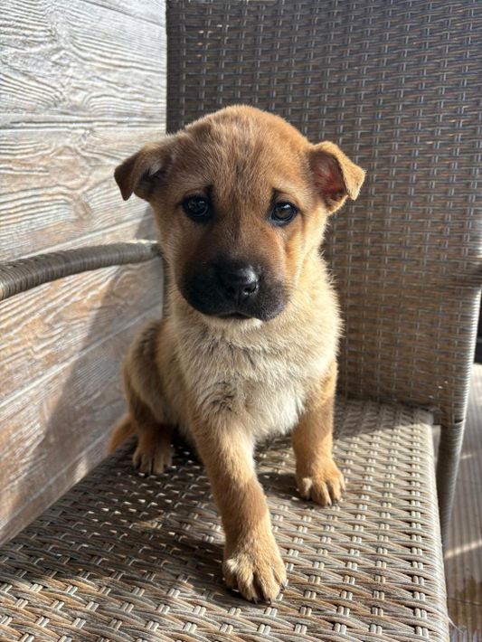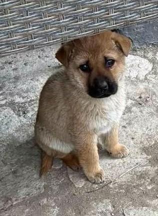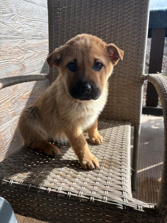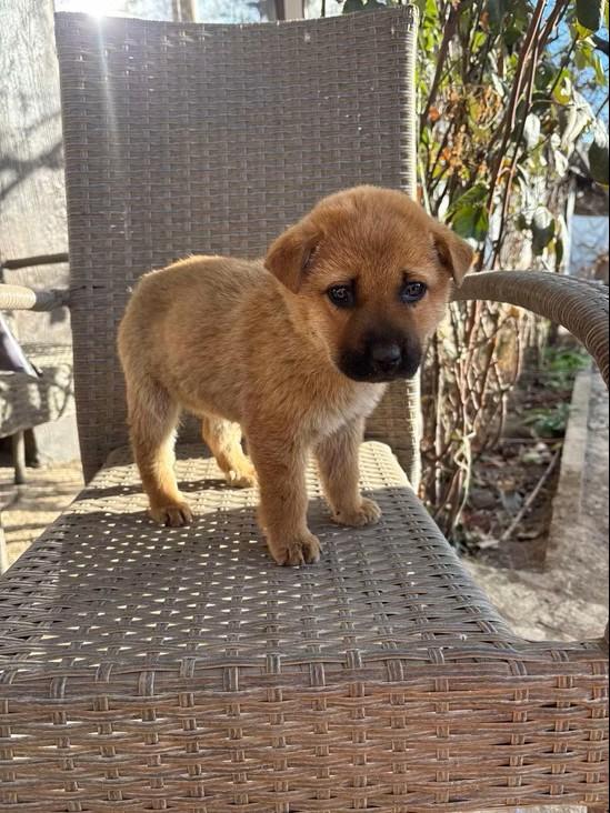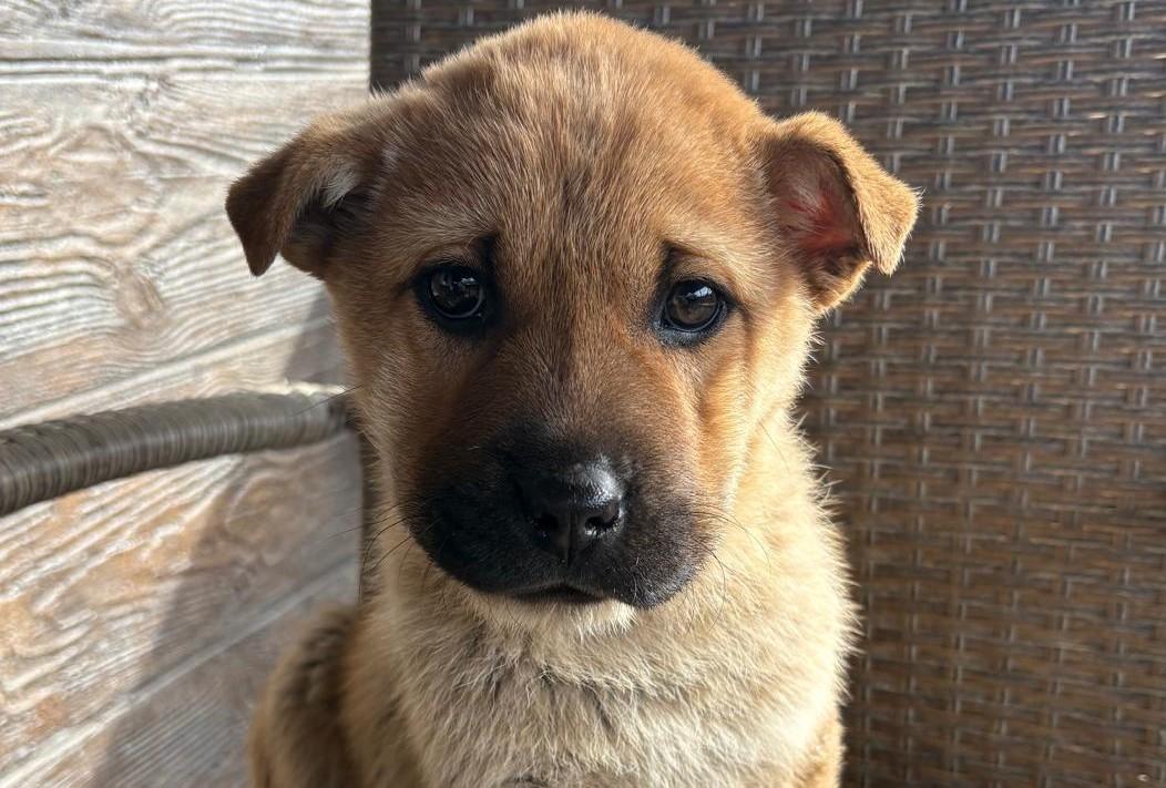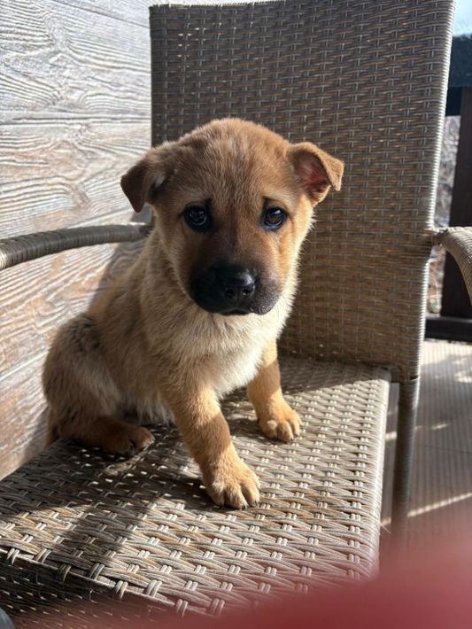 Monchou ist ein freundlicher, neugieriger Welpe.