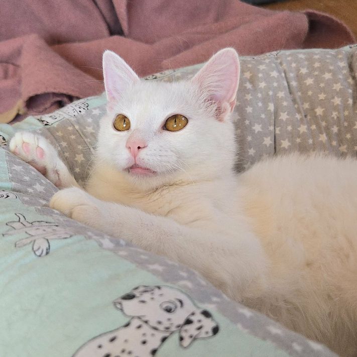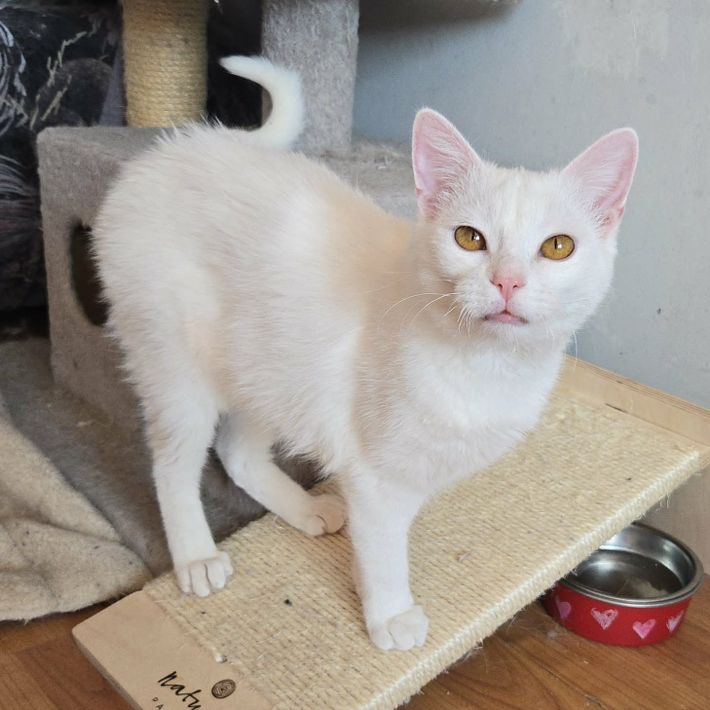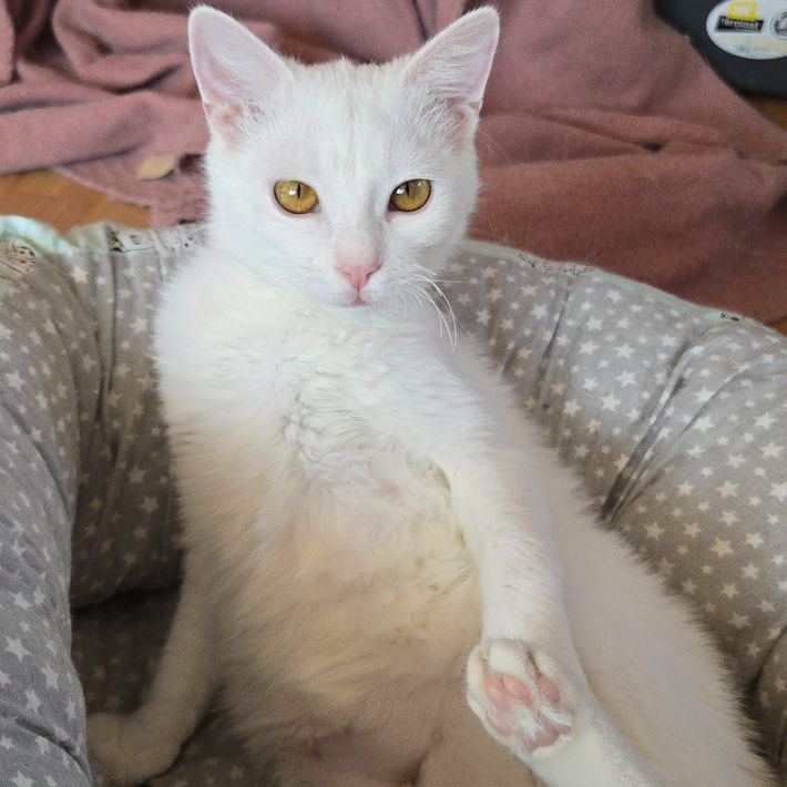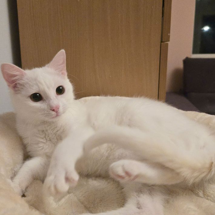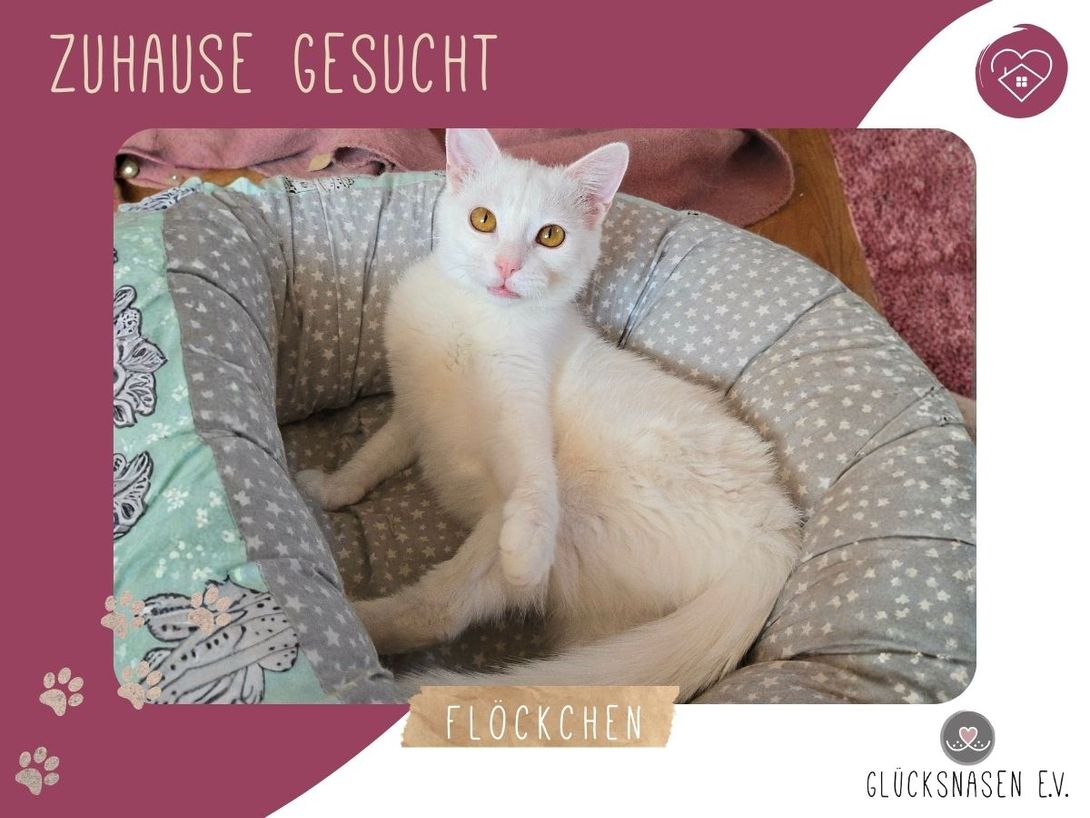 Flöckchen ist eine offene, soziale und verspielte Katze, die gerne überall mit dabei ist. Menschen gegenüber zeigt sie sich offen und freundlich.