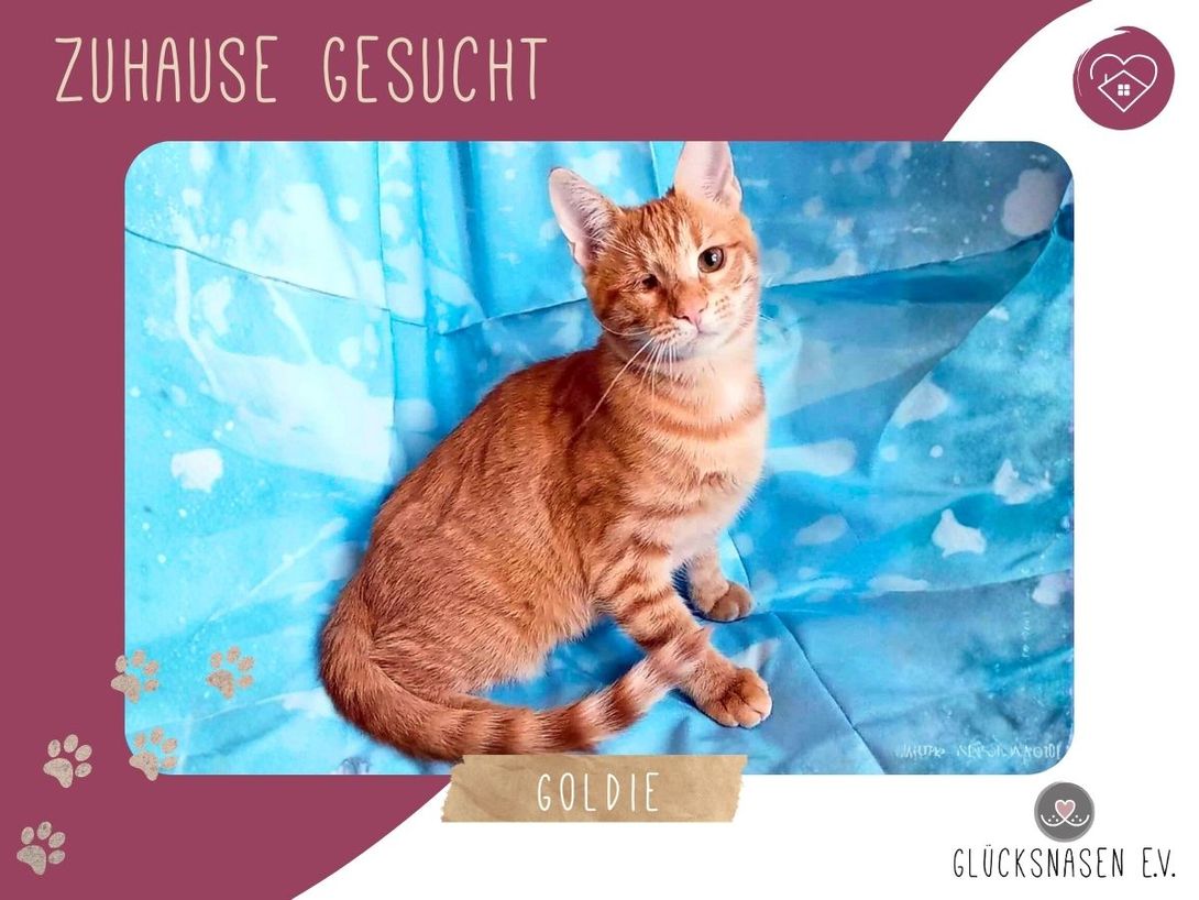 Trotz ihres schwierigen Starts ins Leben hat Goldie sich zu einer bezaubernden jungen Katze entwickelt. Sie versteht sich wunderbar mit anderen Fellnasen und kuschelt gern.