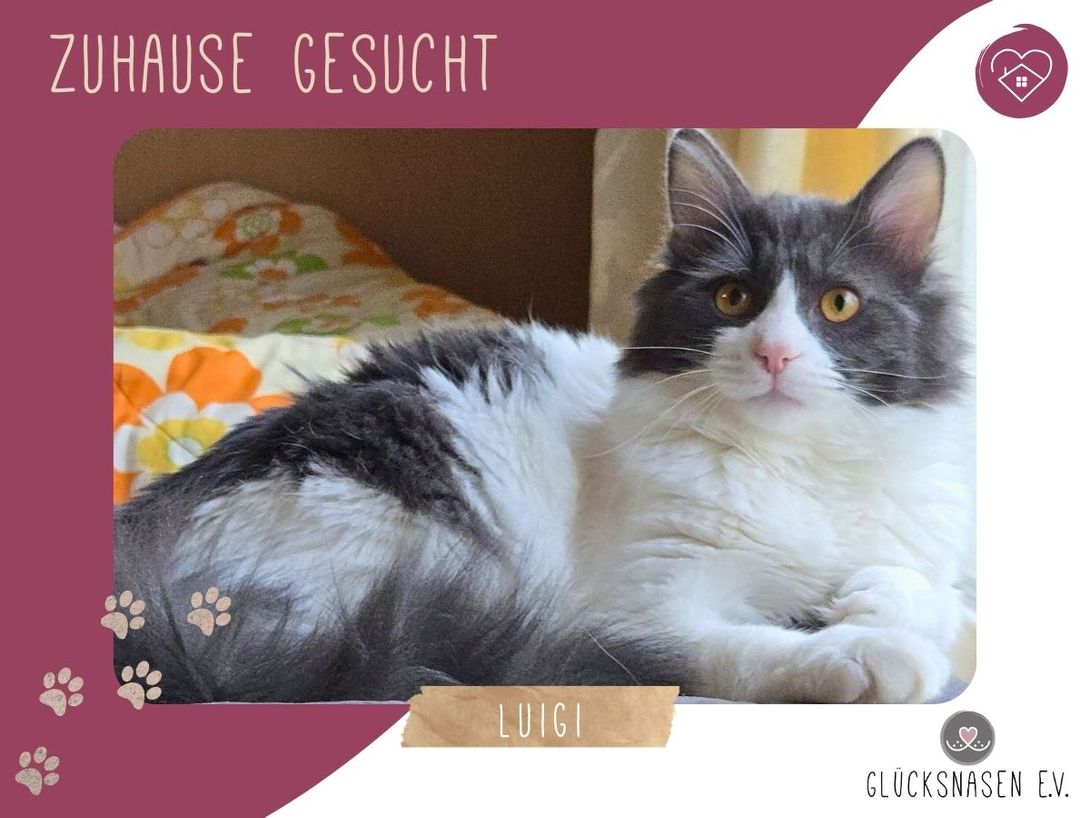 Luigi ist ein ruhiger, ausgeglichener kleiner Kater. Kuscheln findet er auch richtig toll und genießt jede Streicheleinheit in vollen Zügen. Auch mit anderen Katzen versteht sich Luigi gut.