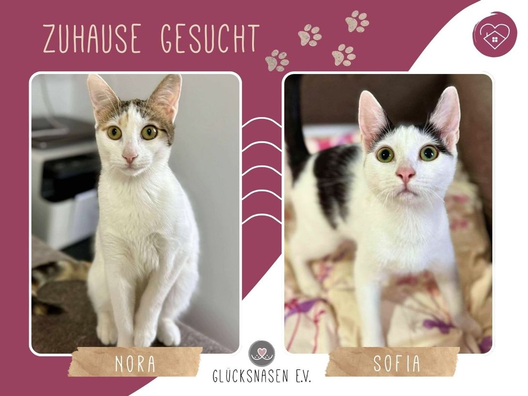 Nora und Sofia hängen sehr aneinander und sind ein eingespieltes Team. Beide sind sehr lieb und mögen auch die Aufmerksamkeit ihrer Menschen. Sie schmusen und spielen gern.