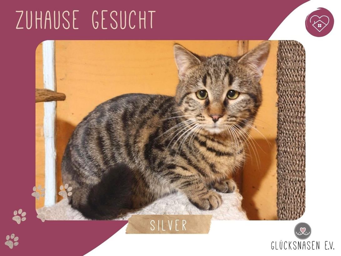 Silver ist ein richtiger kleiner Sonnenschein. Er liebt Menschen denen er vertraut, schließt schnell Freundschaften mit anderen Katzen und spielt gerne mit ihnen. Verschmust ist er sowieso.