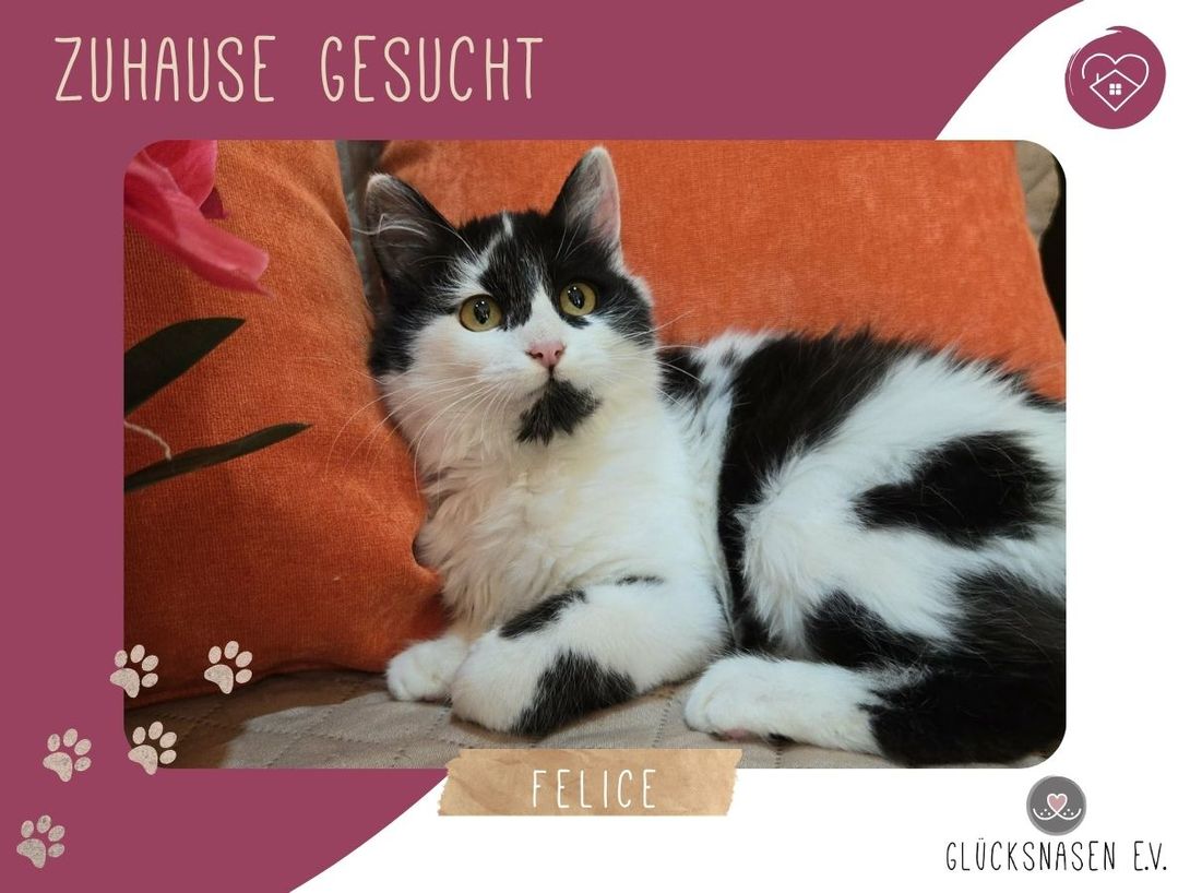 Felice ist ein sehr soziales, freundliches Katzenmädchen, das verspielt und neugierig durchs Leben geht. Sie versteht sich gut mit anderen Katzen und kommt auch mit katzenerfahrenen Hunden zurecht.