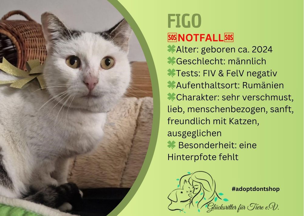 Figo fehlt eine Pfote und er kommt super damit zurecht! Er sucht händeringend ein Kuschelzuhause🆘.